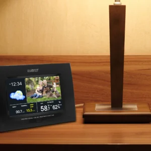 Su principal atractivo es una gran pantalla a color que no solo muestra de forma clara y animada toda la información del clima, sino que también funciona como un marco de fotos, permitiendo ver imágenes desde una memoria USB o una tarjeta SD.