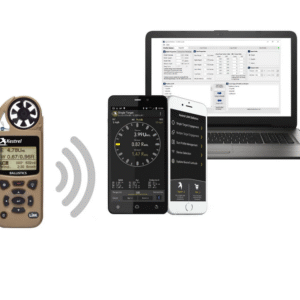 - Conectividad LiNK (Bluetooth): Transfiere perfiles de armas y munición desde tu smartphone a tu Kestrel usando la aplicación gratuita Kestrel LiNK Ballistics. Además, puedes visualizar soluciones de disparo en tu teléfono o transferir datos a otros dispositivos compatibles con LiNK, como telémetros láser y miras.