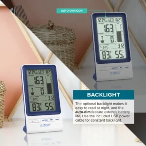 Toda esta información se centraliza en una pantalla nítida con luz de fondo, calendario y reloj. Con opciones de alimentación flexibles, como el cable USB incluido, y un diseño de sobremesa elegante, este Pluviómetro Digital 724-1415BL y Sensor de Temperatura no solo es potente, sino también un complemento perfecto para cualquier hogar.